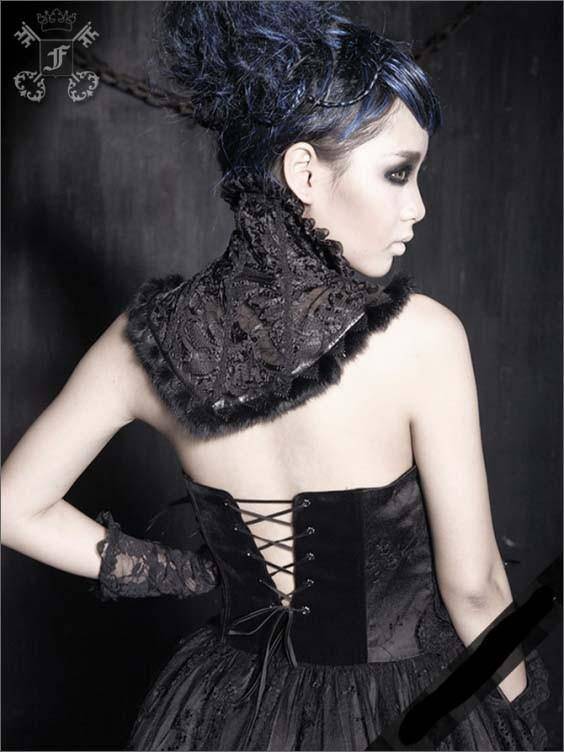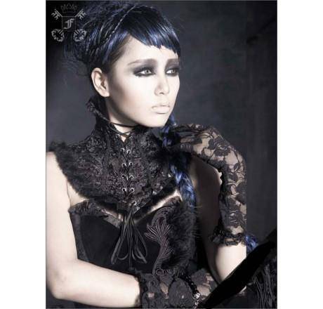 Punk Rave Black Lace Choker With Standing Collar And Decorative Details