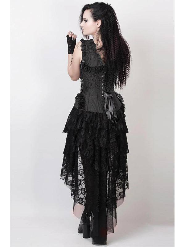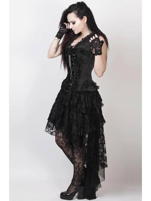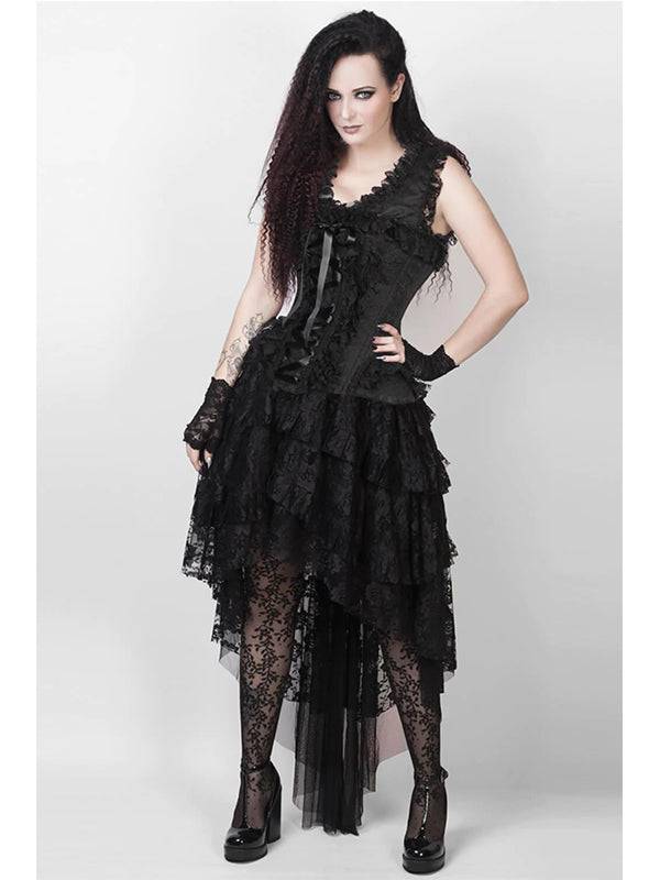 Beautiful corset dress. Brocade corset with cotton lining and satin ribbon. Floral lace skirt. Boning : 10 spiral steel bones and 2 flat steel bones.
