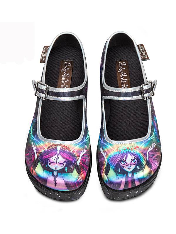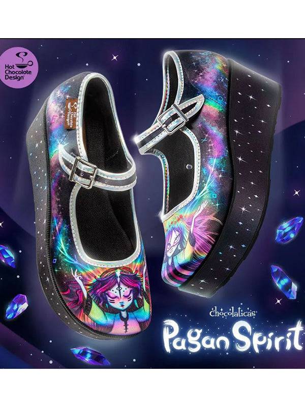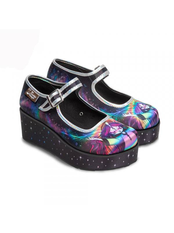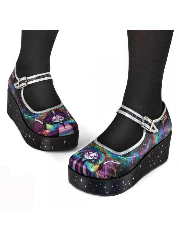 - Printed fabric upper and wedge. Fabric inner