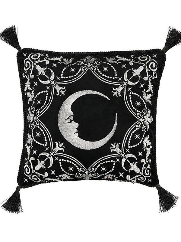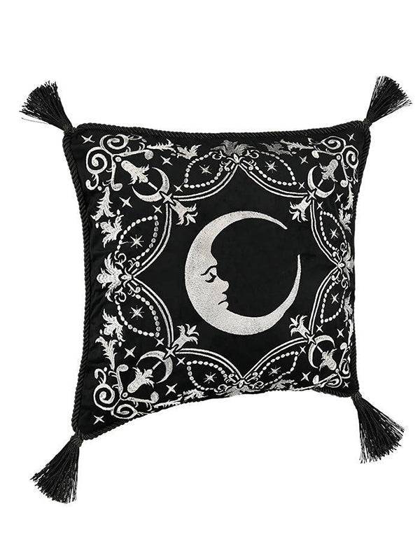 Velvet Pillowcase embroidered with moon and tassels 45 × 45 cm