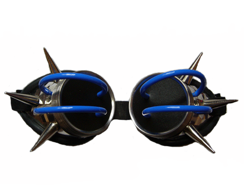 Blue Spiked Goggles with Metal and Rubber, Unique Slithering Design for Parties - In stock is backordered and will ship as soon as it is back in stock.