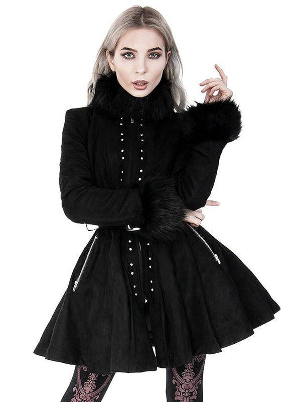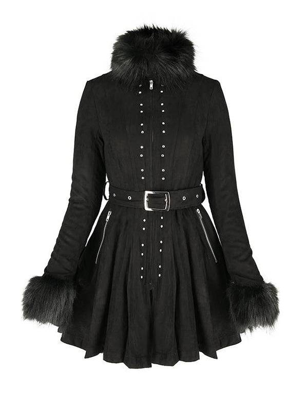 Gothic black coat with faux fur.