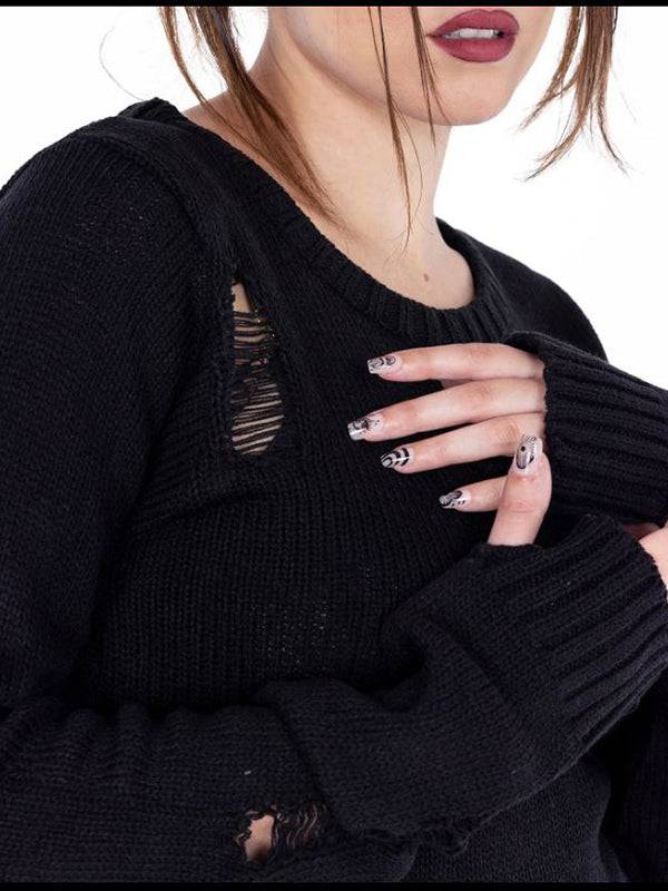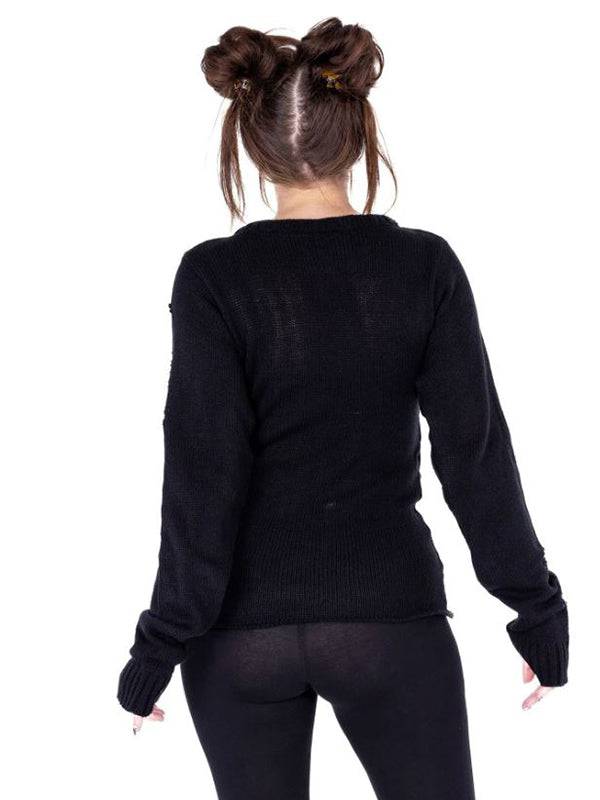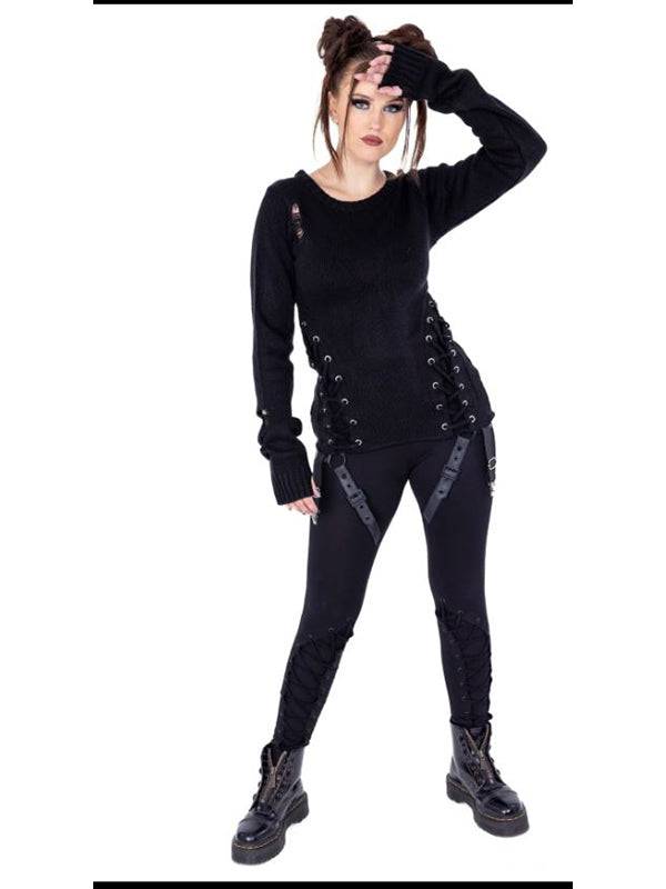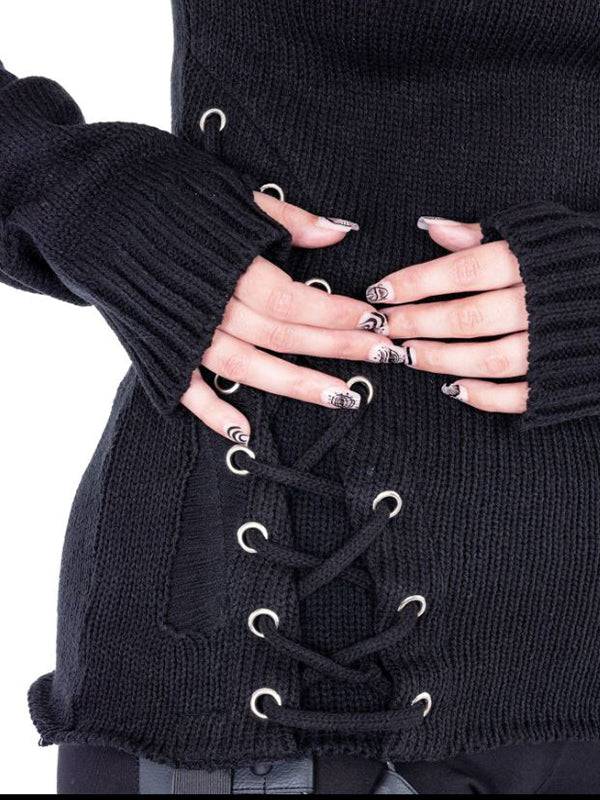Black Siofra Sweater with Lace-Up Detail, Long Sleeves and Thumbholes by Vixxsin