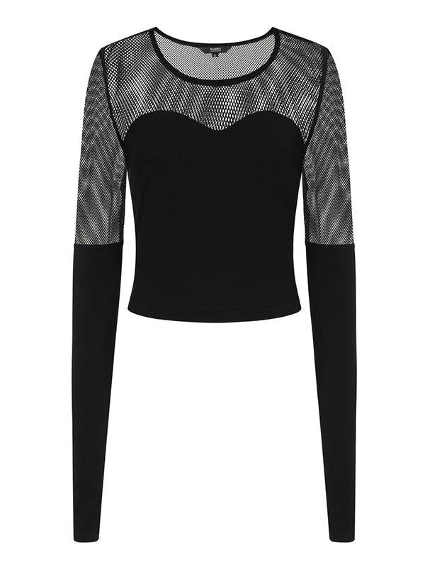Black Dream Me Top with Mesh - 95% Viscose, 5% Elastane for Comfortable Style