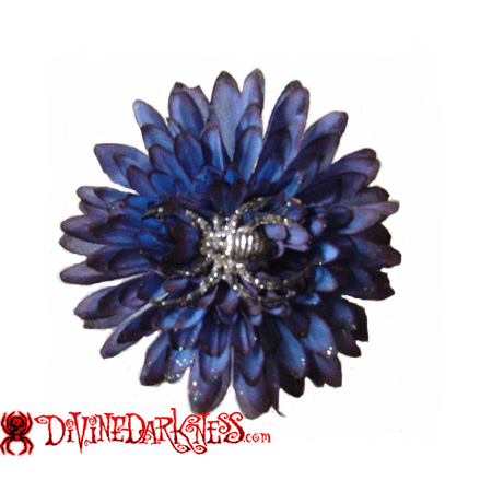 Blue flower and silver spider hairclip