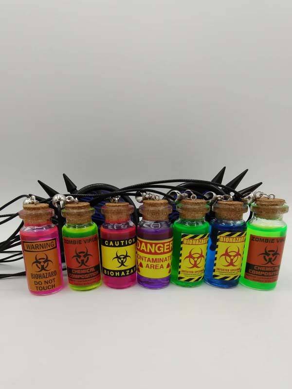 Exclusive necklace to complete every cybergoth outfit. This glass bottle comes with an adjustable cord to use as a long chain or choker.