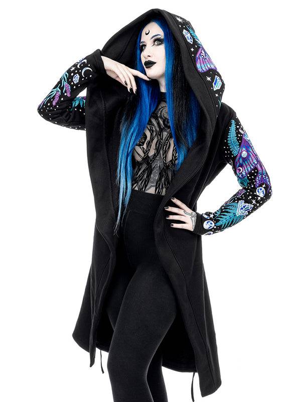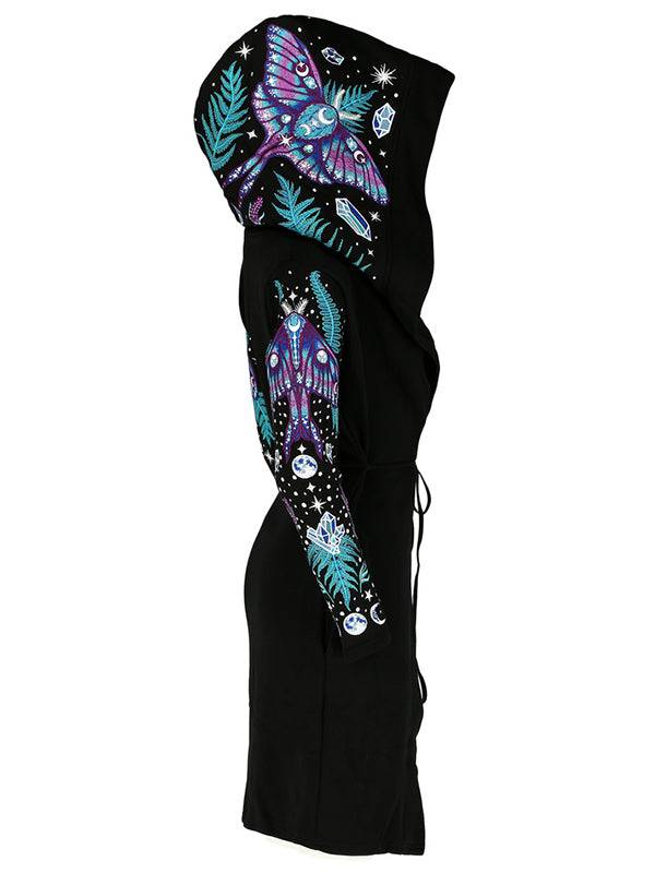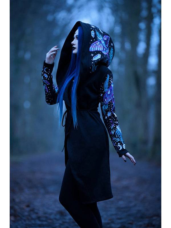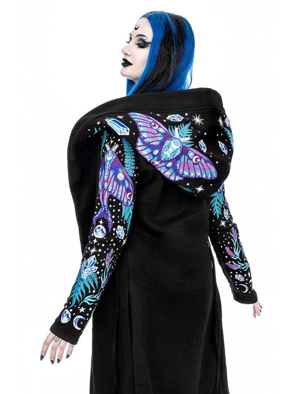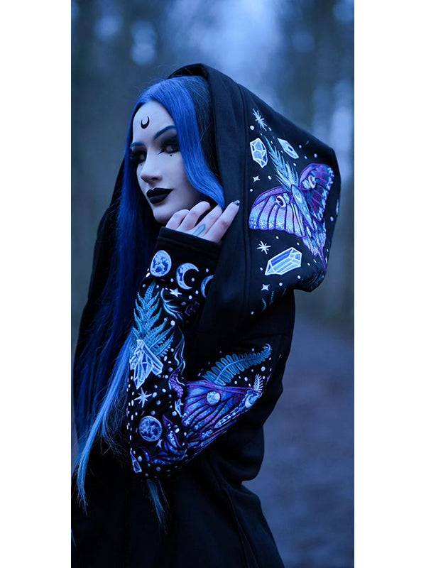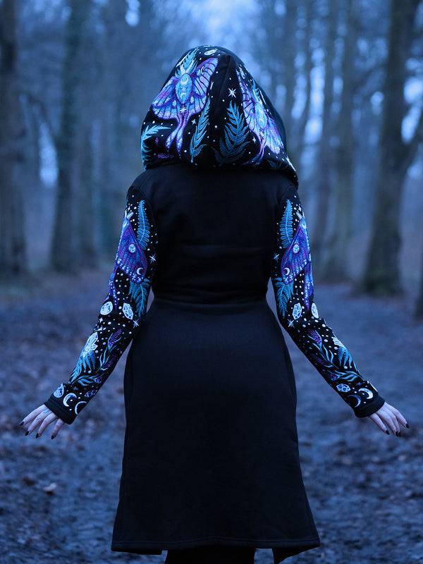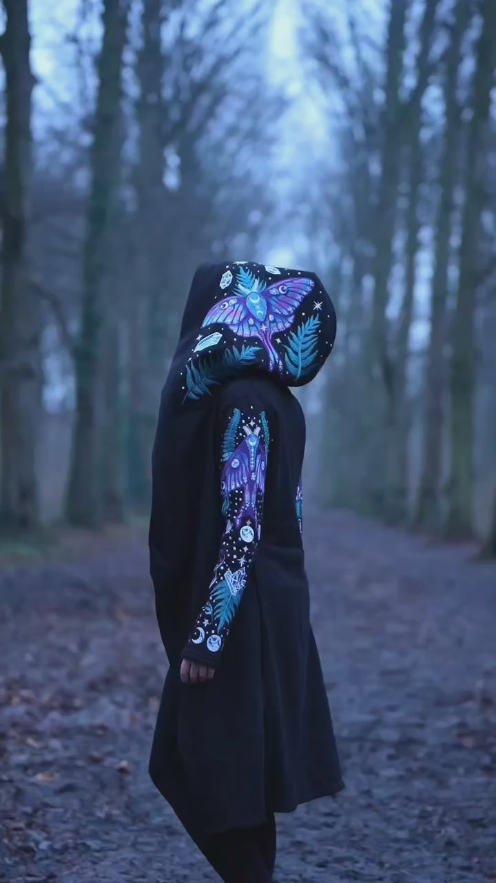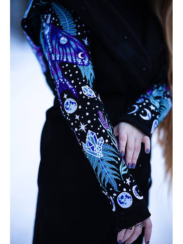 The main motifs are enchanted moths and fern leaves, interspersed with tiny stars, moon phases, crystals and lavender flowers. All patterns have been carefully embroidered, which gives a wonderful, realistic three-dimensional effect.
