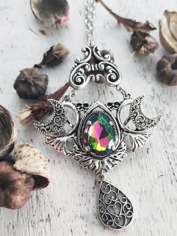 Beautiful silver necklace inspired by magical creatures,holding a sparkling cathedral 13×18 mm teardrop gem.