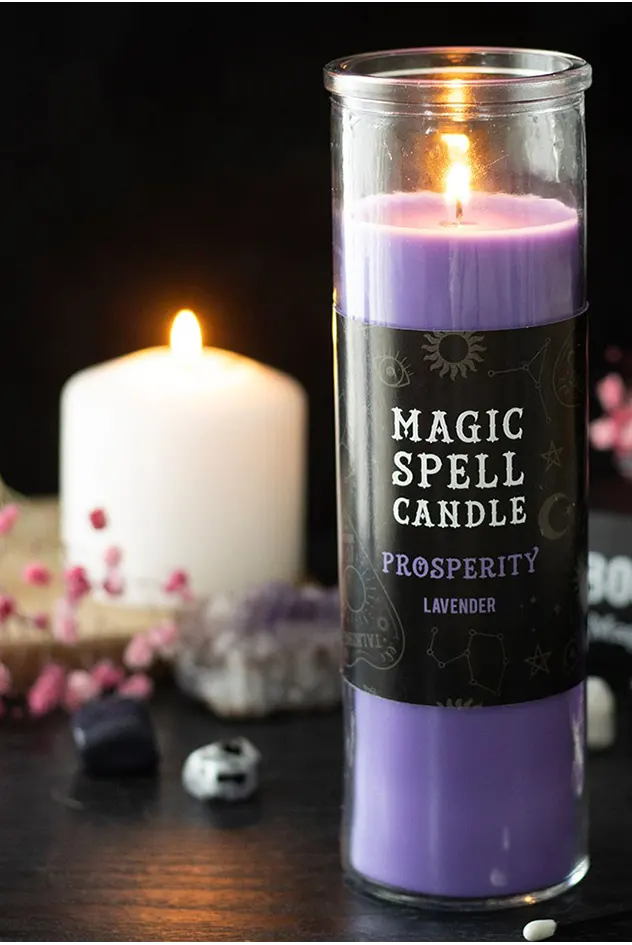 Inspired by traditional 7 day prayer candles, this Prosperity Magic Spell candle is fragranced with calming lavender. It is ideal for rituals focused on growth, abundance and personal success. Perfect for use as a sacred tool or as alternative home decor, this candle is designed to attract prosperity and new opportunities. Approximately 70 hour burn time. Made from paraffin wax. Please practice caution when burning and never leave a lit candle unattended.