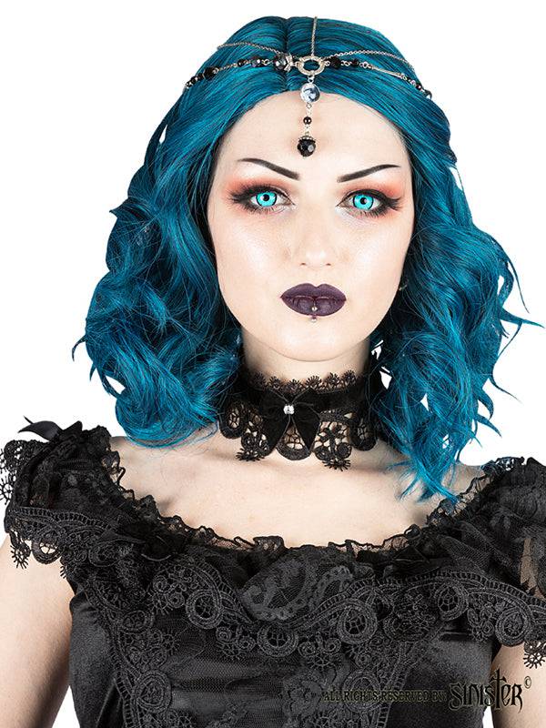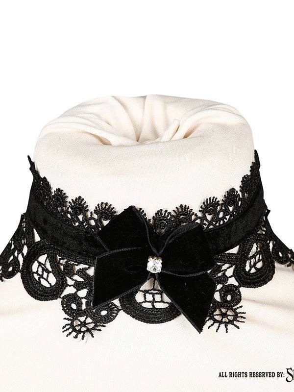 Venetian Lace Choker With Black Velvet Bow And Swarovski Gem - Sinister Clothing